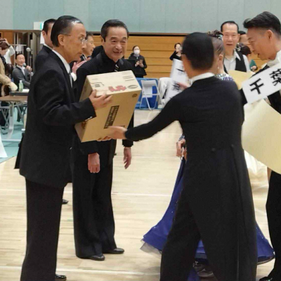 11/3(月)の文化の日に開催されました『関東甲信越プロアマMIXダンス選手権県大会』(@甲府市小瀬スポーツ公園)において、優勝者・優勝チームに「ポンちゃんカップ」をご提供いたしました。