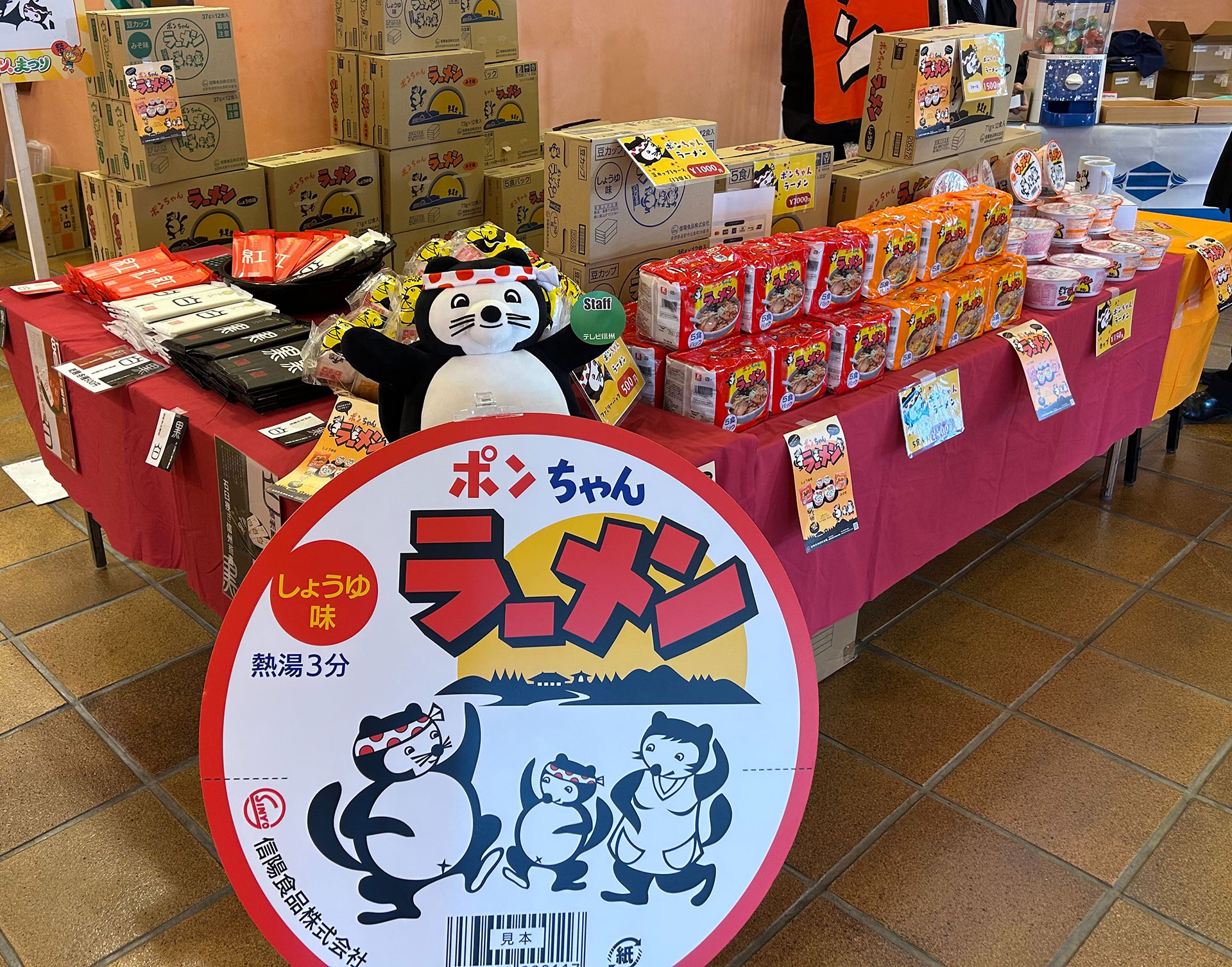 ポンちゃんラーメンはもちろん、今回催事初登場のポンちゃんグッズ(ボールペン、ミニトートバッグ、マグカップ)にも興味を持っていただきました。
