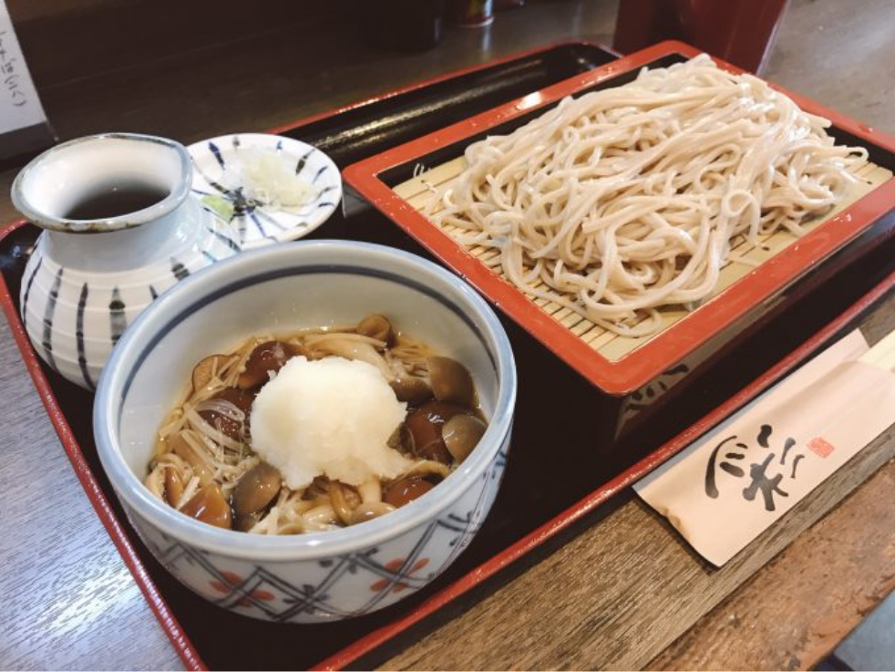 一茶の故郷信濃町黒姫山の裾野に広がる大地で、深い霧に包まれて育った霧下そばを使い、つなぎを加えずそば粉だけで打った十割手打ちそばです。