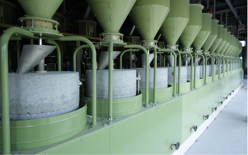 おいしいそばの条件とは簡単にいうと、「碾きたて」・「打ちたて」・「茹でたて」の「三たて」といわれています。しかし、中でも重要なのはそば粉の製粉方法で、それで味が左右されるといっても過言ではないでしょう。もちろん信陽食品は石臼による製法で良質のそば粉を作り出しています。